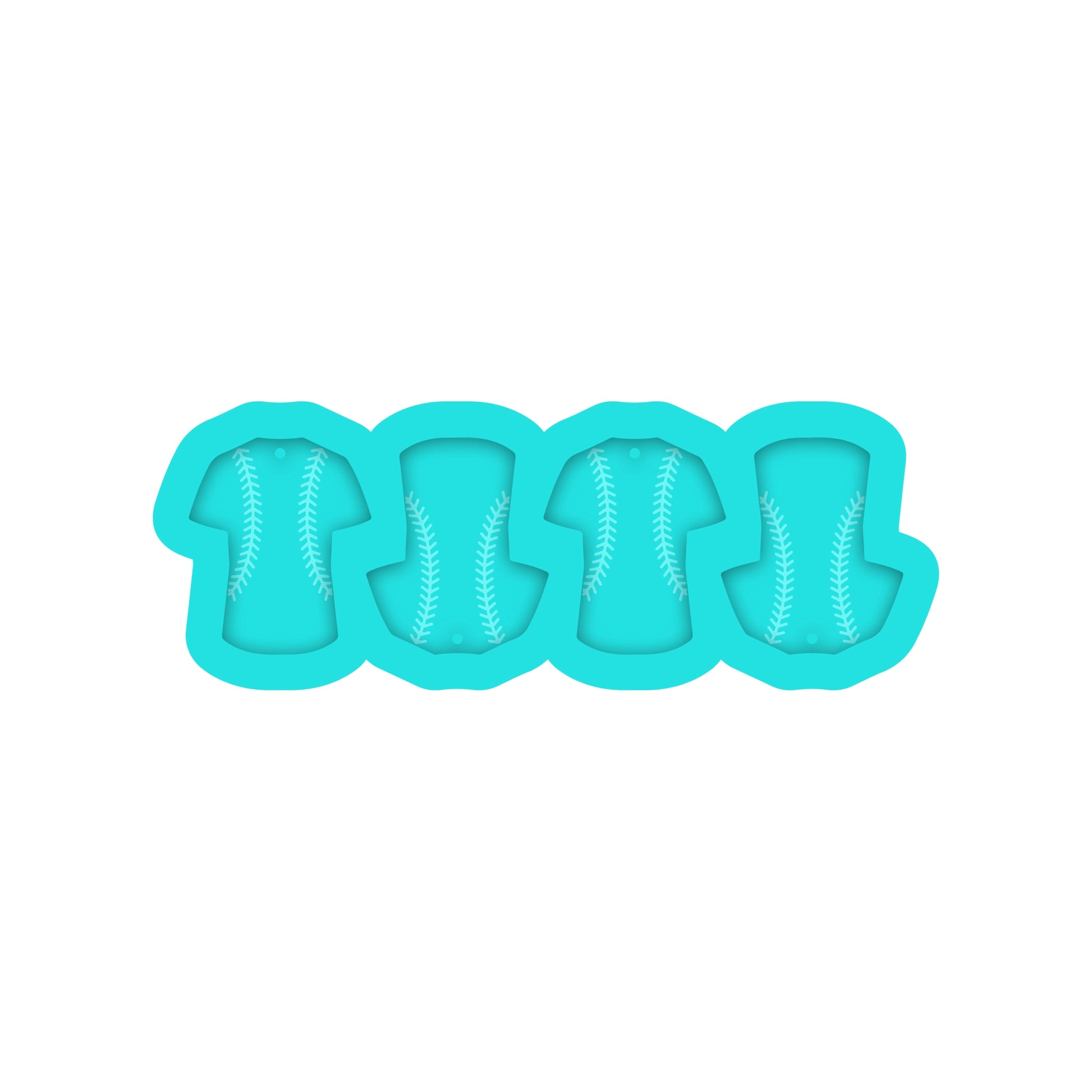 Custom order for a baseball jersey resin earring silicone mold including 4 cavities or 2 pair with engraved baseball laces.